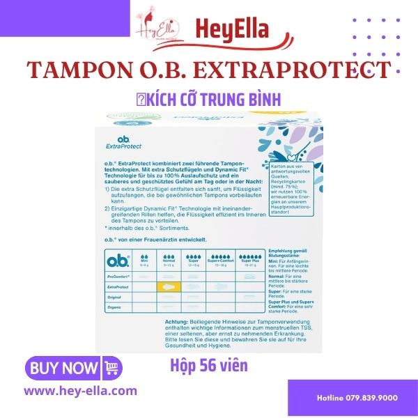 HeyElla shop giới thiệu đến bạn băng vệ sinh dạng que Tampon Ob ExtraProtect, một loại tampon Đức, đây là dòng sản phẩm tốt nhất dành cho bạn trong giai đoạn sau khi sinh, giai đoạn tiền mãn kinh và dành cho những mẹ muốn ngủ ngon qua đêm mà không sợ tràn sợ trào vì kinh nguyệt quá nhiều.