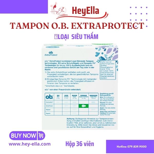 HeyElla giới thiệu đến bạn loại băng vệ sinh dạng ống Tampon Ob ExtraProtect Super+Comfort, một loại tampon dành cho bạn vào ban đêm, vào giai đoạn sau khi sinh con xong và vào giai đoạn mãn kinh, một sự lựa chọn tốt nhất giúp bạn vượt qua những thời kỳ này một cách tuyệt vời và an toàn.